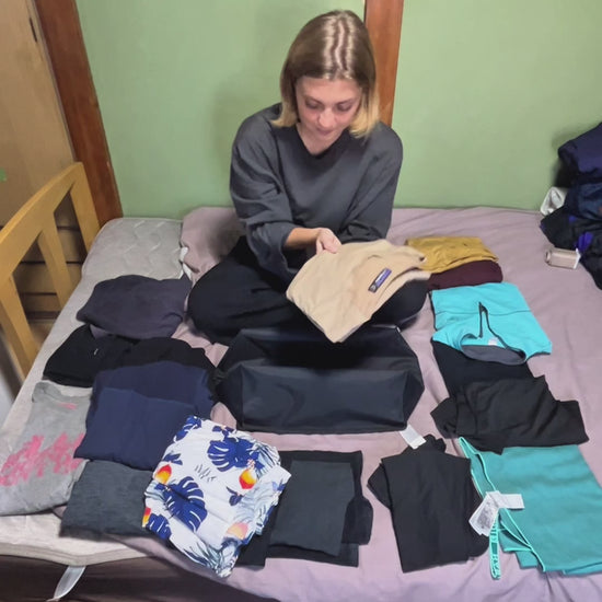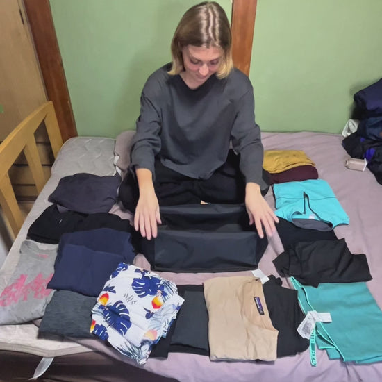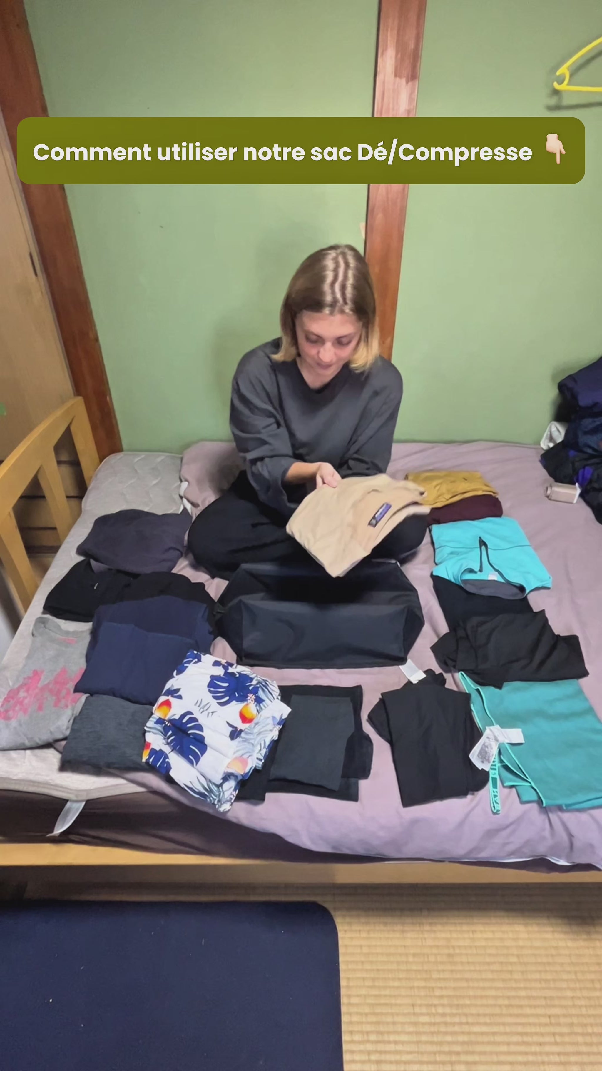 Avec le sac DĂ©/Compresse et la pompe, tu rĂ©duis le volume de tes affaires jusquâĂ 60%.